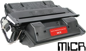This is a premium compatible C4127X MICR toner cartridge, formulated to print checks in the printers listed below. If you’d like assistance ordering the correct part for your machine, call us at 1.800.388.8218.