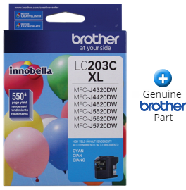 This LC203C XL (550 Yield) OEM Brother ink cartridge will not void your machine's warranty and is backed by the manufacturer guarantee.