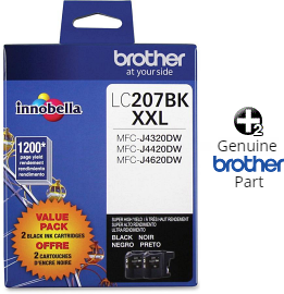 These LC207BK XXL (LC2072PKS) (1,200 Yield each) OEM Brother ink cartridges will not void your machine's warranty and are backed by the manufacturer guarantee.