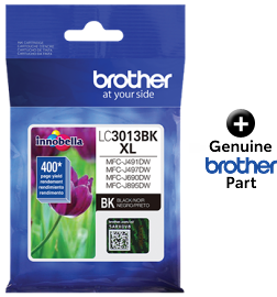 This genuine LC3013BK XL (400 Yield) OEM Brother ink cartridge will not void your machine's warranty and is backed by the manufacturer guarantee.