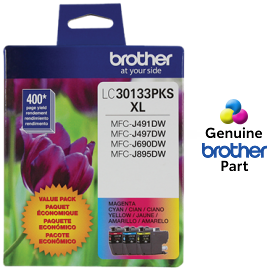 These genuine LC30133PKS (LC3013C, LC3013M, LC3013Y) (400 Yield each) OEM Brother ink cartridges will not void your machine's warranty and are backed by the manufacturer guarantee.