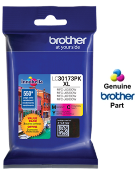 These genuine LC30173PK (LC3017C/ LC3017M/ LC3017Y, XL) (550 Yield each) OEM Brother ink cartridges will not void your machine's warranty and are backed by the manufacturer guarantee.