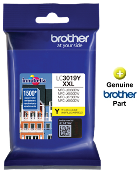 This genuine LC3019Y (XXL) (1,500 Yield) OEM Brother ink cartridge will not void your machine's warranty and is backed by the manufacturer guarantee.