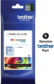 This genuine LC3035BK (XXL) (6,000 Yield) OEM Brother ink will not void your machine's warranty and is backed by the manufacturer guarantee.