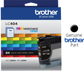 Brother Genuine LC404BK is for use with Brother INKvestment Tank multi-function color inkjet printer models MFC-J1205W, MFC-J1205W XL and MFC-J1215W.