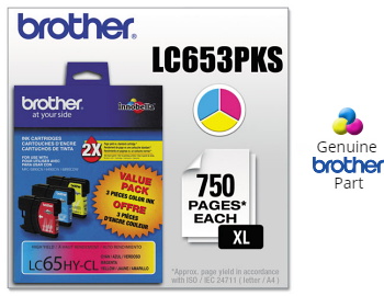These LC653PKS (LC65HYC, LC65HYM, LC65HYY) (750 Yield each) OEM Brother ink cartridges will not void your machine's warranty and are backed by the manufacturer guarantee.