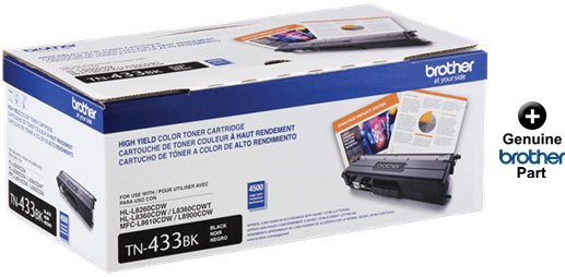 This genuine TN433BK (4,500 Yield) OEM Brother toner will not void your machine's warranty and is backed by the manufacturer guarantee.