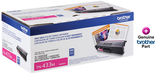 This genuine TN433M (4,000 Yield) OEM Brother toner will not void your machine's warranty and is backed by the manufacturer guarantee.
