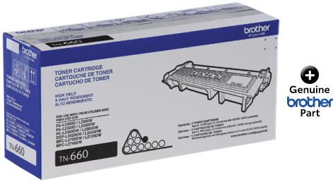 This genuine TN660 (2,600 Yield) OEM Brother toner will not void your machine's warranty and is backed by the manufacturer guarantee.