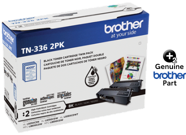 These genuine TN3362PK (TN336BK) (4,000 Yield each) OEM Brother toners will not void your machine's warranty and are backed by the manufacturer guarantee.