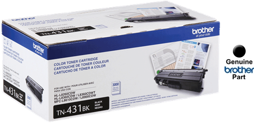 This genuine TN431BK (3,000 Yield) OEM Brother toner will not void your machine's warranty and is backed by the manufacturer guarantee.