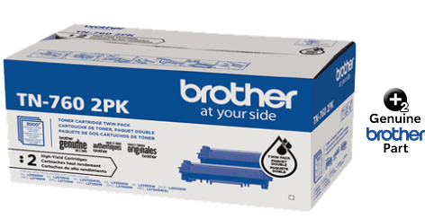 These genuine TN7602PK (TN760, TN-760) (3,000 Yield each) OEM Brother toners will not void your machine's warranty and are backed by the manufacturer guarantee.