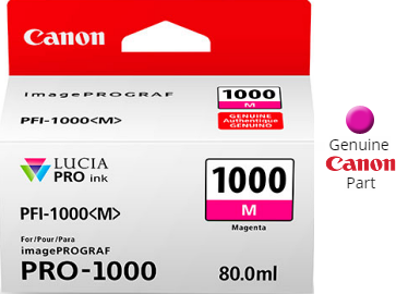 This 0548C002 (PFI-1000, 1000 M) (80 ml) OEM Canon ink tank will not void your machine's warranty and is backed by the manufacturer guarantee.