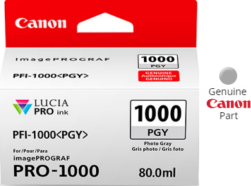 This 0553C002 (PFI-1000, 1000 PGY) (80 ml) OEM Canon ink tank will not void your machine's warranty and is backed by the manufacturer guarantee.