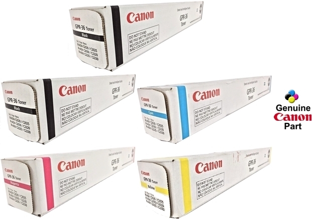 OEM 5-Pack: Black, Cyan, Magenta & Yellow Canon imageRUNNER ADVANCE C2020/ C2030/ C2225/ C2230 Original Toners, 3782B003/ 3783B003/ 3784B003/ 3785B003 (GPR-36)