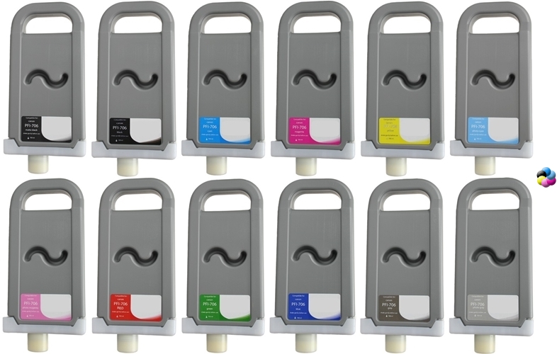 These are premium quality Canon PFI706 compatible pigment ink tanks, with chips that communicate with the printer, that are 100% guaranteed to perform as well as the Canon brand ink tanks - at a fraction of the cost.