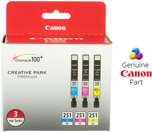 These CLI-251 6514B009 (6514B001, 6515B001, 6516B001) OEM Canon ink cartridges will not void your machine's warranty and are backed by the manufacturer guarantee.
