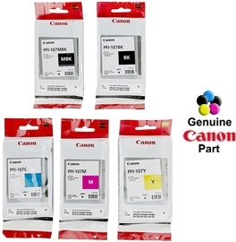 These genuine PFI-107MBK/ PFI-107BK/ PFI-107C/ PFI-107M/ PFI-107Y (130ml each) OEM Canon ink cartridges will not void your machine's warranty and are backed by the manufacturer guarantee.