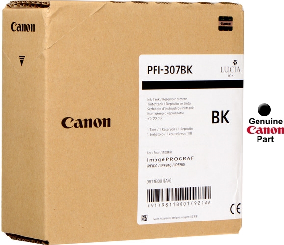 This genuine PFI-307BK (9811B001, 9811B001AA) OEM Canon ink tank will not void your machine's warranty and is backed by the manufacturer guarantee.