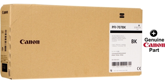 This genuine PFI-707BK (9821B001, 9821B001AA) OEM Canon ink tank will not void your machine's warranty and is backed by the manufacturer guarantee.