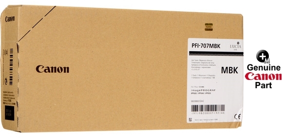 This genuine PFI-707MBK (9820B001, 9820B001AA) OEM Canon ink tank will not void your machine's warranty and is backed by the manufacturer guarantee.