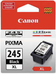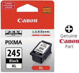 This Genuine Canon black ink cartridge is formulated for use in the printers listed below. Experience crisp, smudge-resistant professional quality text with the PG-245XL Pigment Black Ink Cartridge. Designed with FINE (Full Photolithographic Inkjet Nozzle Engineering) technology, your documents will realize added sharpness, detail and quality. This genuine Canon ink cartridge is compatible with select PIXMA printers. Remember, a genuine Canon XL ink cartridge means high capacity, which means more ink for more prints!