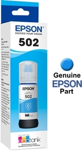 This is a genuine OEM Epson cyan ink bottle that's formulated for use in the printers listed below. Epson’s EcoTank replacement ink bottles offer thousands of vivid pages, while delivering genuine Epson quality. When it comes time to buy more ink, you save up to 80 percent on low-cost replacement ink bottles. Plus, these ink bottles feature exclusive autostop technology, with each color uniquely keyed for easy filling of each tank. Ideal for everyday printing, these ultra high capacity inks mean you can go longer before replacing them for an unbeatable combination of value and convenience.