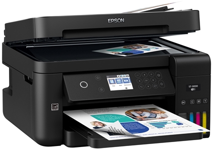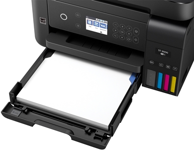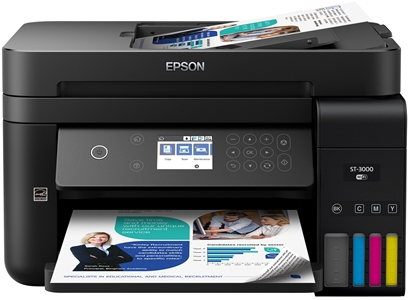 The WorkForce ST-3000 EcoTank color MFP, powered by PrecisionCore®, offers remarkable productivity for small work teams. It features revolutionary cartridge-free printing with easy-to-fill, supersized ink tanks. And, it includes up to 2 years of ink in the box – enough to print up to 14,000 pages black/11,200 color, and equivalent to about 30 ink cartridge sets. Save up to 80 percent with low-cost replacement ink bottles vs. ink cartridges. The ST-3000 also offers a 30-sheet ADF, fast auto 2-sided printing, borderless printing up to 8.5" x 11", a 2.4" color LCD and easy wireless printing from tablets and smartphones.