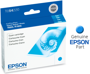 This Genuine Epson T0542 (T054220, T054) (400 Yield) cyan ink cartridge is formulated for use in the Epson printers listed below. OEM Epson ink cartridges will not void your machine's warranty and are backed by the manufacturer guarantee.