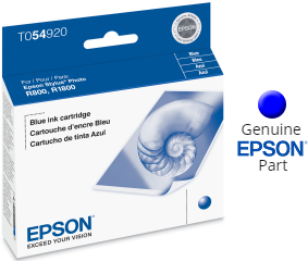 This Genuine Epson T0549 (T054920, T054) (400 Yield) blue ink cartridge is formulated for use in the Epson printers listed below. OEM Epson ink cartridges will not void your machine's warranty and are backed by the manufacturer guarantee.