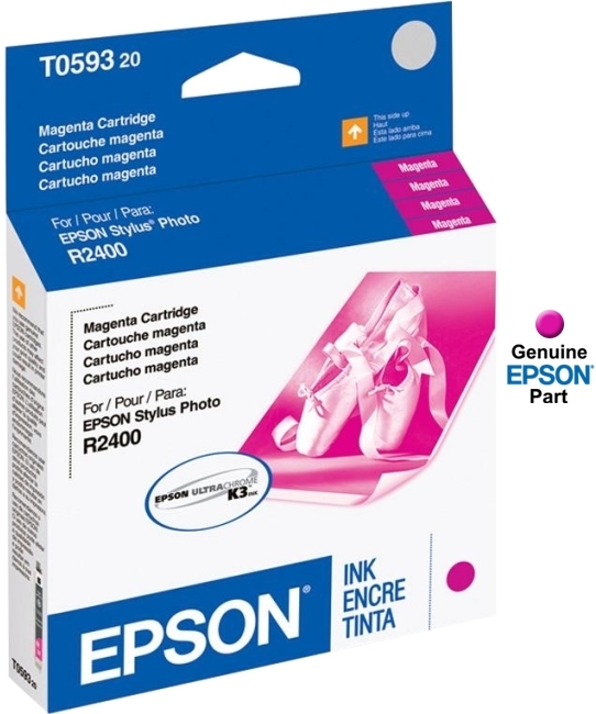 This is a genuine Epson Stylus Photo R2400 OEM magenta UltraChrome K3 ink cartridge that's guaranteed by the manufacturer to generate optimum print quality and give you maximum productivity.