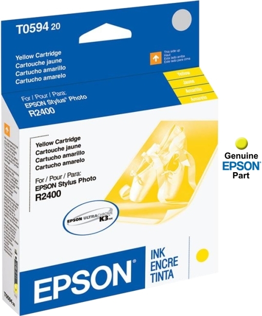 This is a genuine Epson Stylus Photo R2400 OEM yellow UltraChrome K3 ink cartridge that's guaranteed by the manufacturer to generate optimum print quality and give you maximum productivity.