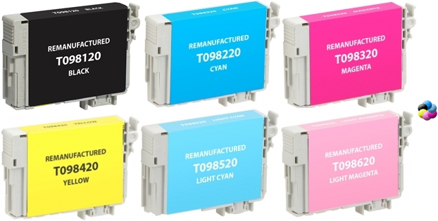 These are premium quality Epson Artisan 700/ 710/ 725/ 730/ 800/ 810/ 835/ 837 remanufactured high capacity #98 ink cartridges that are 100% guaranteed to perform as well as the Epson brand cartridges - at a fraction of the cost.