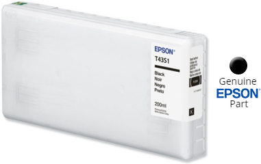 This Genuine Epson T43S1 K (T43S120, T43S) (200 ml) black ink cartridge is formulated for use in the Epson printer listed below. OEM Epson ink cartridges will not void your machine's warranty and are backed by the manufacturer guarantee.