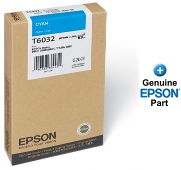 OEM 220ml-Epson Cyan T6032 Original UltraChrome K3 Ink Cartridge, T603200