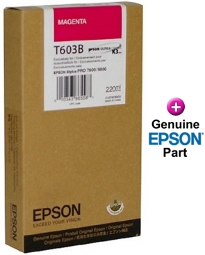 This is a genuine Epson Stylus Pro 7800 & Epson Stylus Pro 9800 OEM magenta ink cartridge that's guaranteed by the manufacturer to generate optimum print quality and give you maximum productivity.