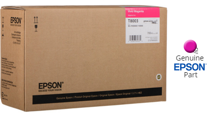 These T8003 (T80030V, T800, T800300) (700 ml each) OEM Epson ink cartridges will not void your machine's warranty and are backed by the manufacturer guarantee.
