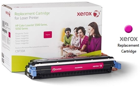 This is a Xerox replacement magenta toner cartridge that's formulated for use in the printers listed below. This Xerox brand magenta toner cartridge is compatible with the HP 5500, 5550 and yields up to 12,800 pages. Replaces OEM part number C9733A. Xerox replacement cartridges are a high-value alternative to non-Xerox OEM cartridges and come with a 100% lifetime warranty.