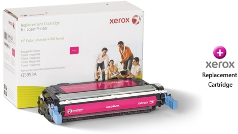 This is a Xerox replacement magenta toner cartridge that's formulated for use in the printers listed below. This Xerox brand Magenta toner cartridge is compatible with the HP 4700 and yields up to 13,100 pages. Replaces OEM part number Q5953A. Xerox replacement cartridges are a high-value alternative to non-Xerox OEM cartridges and come with a 100% lifetime warranty.