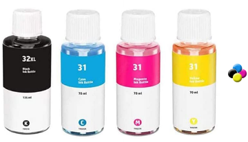 These premium quality compatible ink bottles (Alternative for HP 1VV24AN, 1VU26AN, 1VU27AN, 1VU28AN, 31, 32XL) will not void your machine's warranty and are backed by a 100% quality and satisfaction guarantee for two full years. Click here for details.