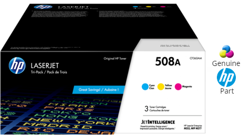These genuine CF360AM (CF361A/ CF362A/ CF363A, 508A) (5,000 Yield each) OEM HP toners will not void your machine's warranty and are backed by the manufacturer guarantee.