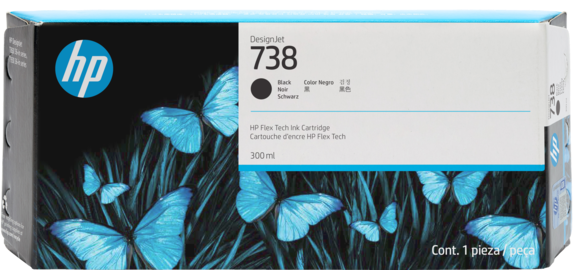 HP 738 300-ml Black DesignJet Ink Cartridge, 498N8A