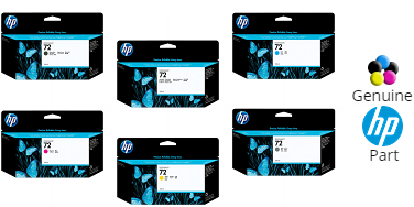 These 72 (C9370A, C9371A, C9372A, C9373A, C9374A, C9403A) (130 ml each) OEM HP ink cartridges will not void your machine's warranty and are backed by the manufacturer guarantee.