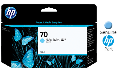 This 70 (C9390A) (130 ml) OEM HP ink cartridge will not void your machine's warranty and is backed by the manufacturer guarantee.