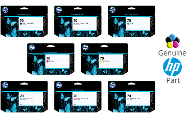 These 70 (C9390A, C9448A, C9449A, C9451A, C9452A, C9453A, C9454A, C9455A) (130 ml each) OEM HP ink cartridges will not void your machine's warranty and are backed by the manufacturer guarantee.