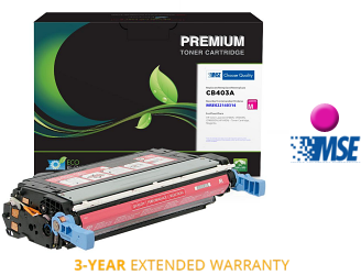 This MSE Premium remanufactured toner cartridge (Alternative for HP CB403A, 642A) (7,500 Yield) will not void your machine's warranty and is backed by a 100% quality and satisfaction guarantee for three full years. Click here for details.