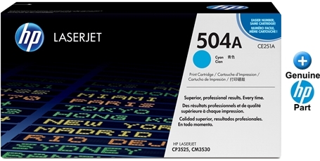 This is a genuine OEM HP cyan toner cartridge that's formulated for use in the printers listed below. Get the best results from your HP printing system. HP Smart technology and chemically-grown toner formulas in HP 504A LaserJet Toner Cartridges work with your printer to deliver accurate, consistent color and reliable, cost-effective performance.