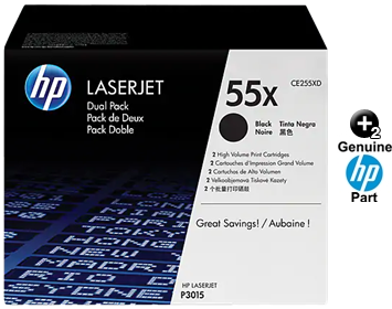 These genuine CE255XD (CE255X, 55X) (12,500 to 13,500 Yield each) OEM HP toners will not void your machine's warranty and are backed by the manufacturer guarantee.
