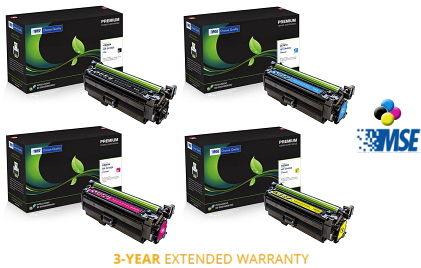 These MSE Premium remanufactured toner cartridges (Alternative for HP CE260A/ CE261A/ CE262A/ CE263A, 647A/ 648A) will not void your machine's warranty and are backed by a 100% quality and satisfaction guarantee for three full years. Click here for details.