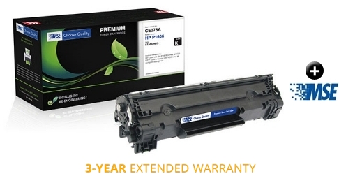 This MSE Premium remanufactured toner cartridge (Alternative for HP CE278AK, CE278A, 78A) (3,100 Yield) will not void your machine's warranty and is backed by a 100% quality and satisfaction guarantee for three full years. Click here for details.